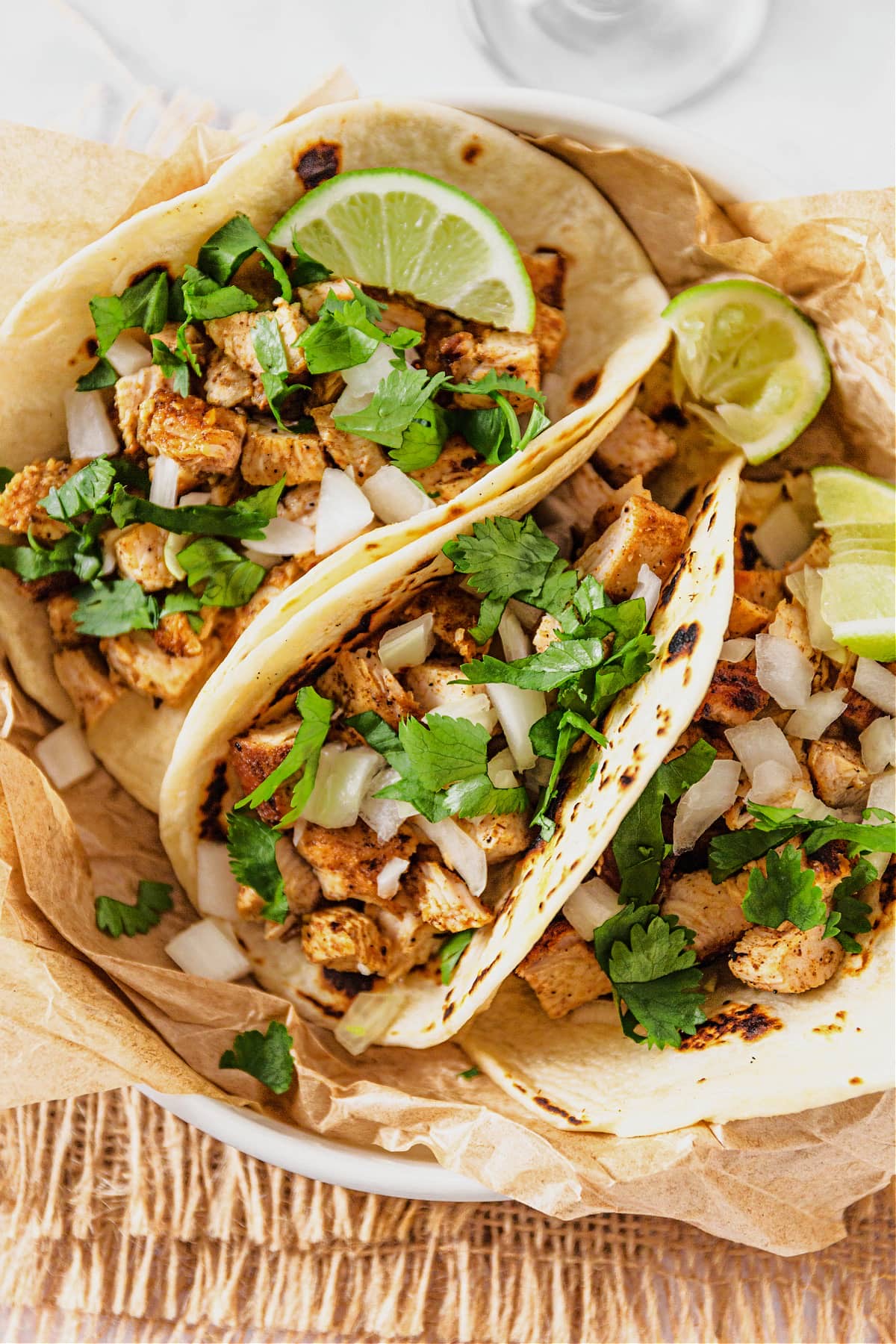 Juicy, slow-marinated chicken thighs, chopped and seared to perfection for rich, authentic taco flavor. Served on (3) street-style soft tortillas and topped with fresh cilantro, diced onion, and a squeeze of lime for that perfect bright finish.